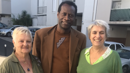 Marie-Claude Cayzac et Guylène Dubois reçoivent Aziz Fall, pour la campagne internationale « Justice pour Sankara »