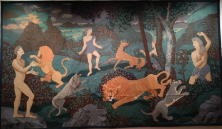 La représentation que je vous propose, est la tapisserie réalisée autour d’une huile ‘L’âge d’or’, d’André Derain.
