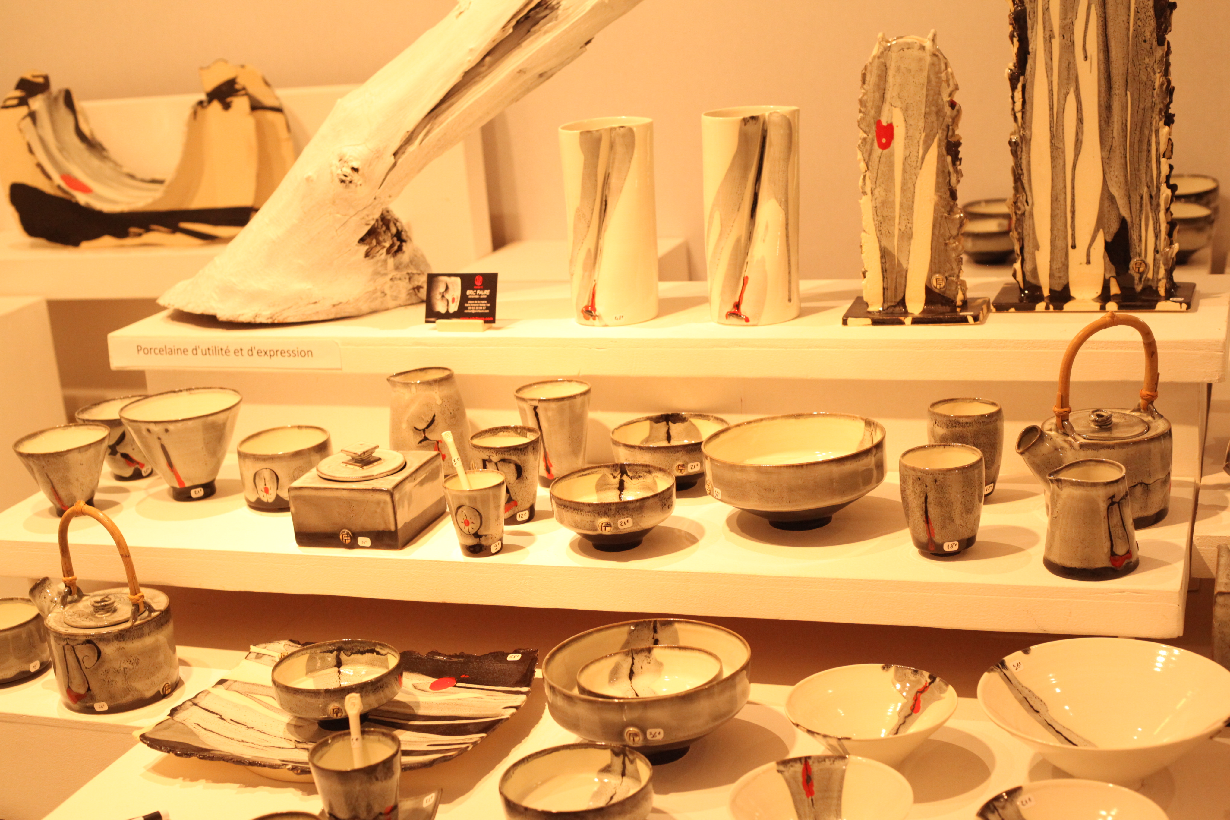 En continuant, en se balladant, on voit de la porcelaine travaillée de façon unique et réalisée depuis Laval en Mayenne. Ou bien encore de la céramique, avec toujours cette volonté de travailler le minéral et de produire des objets beaux et raffinés mais qui puissent être utilisés au quotidien.