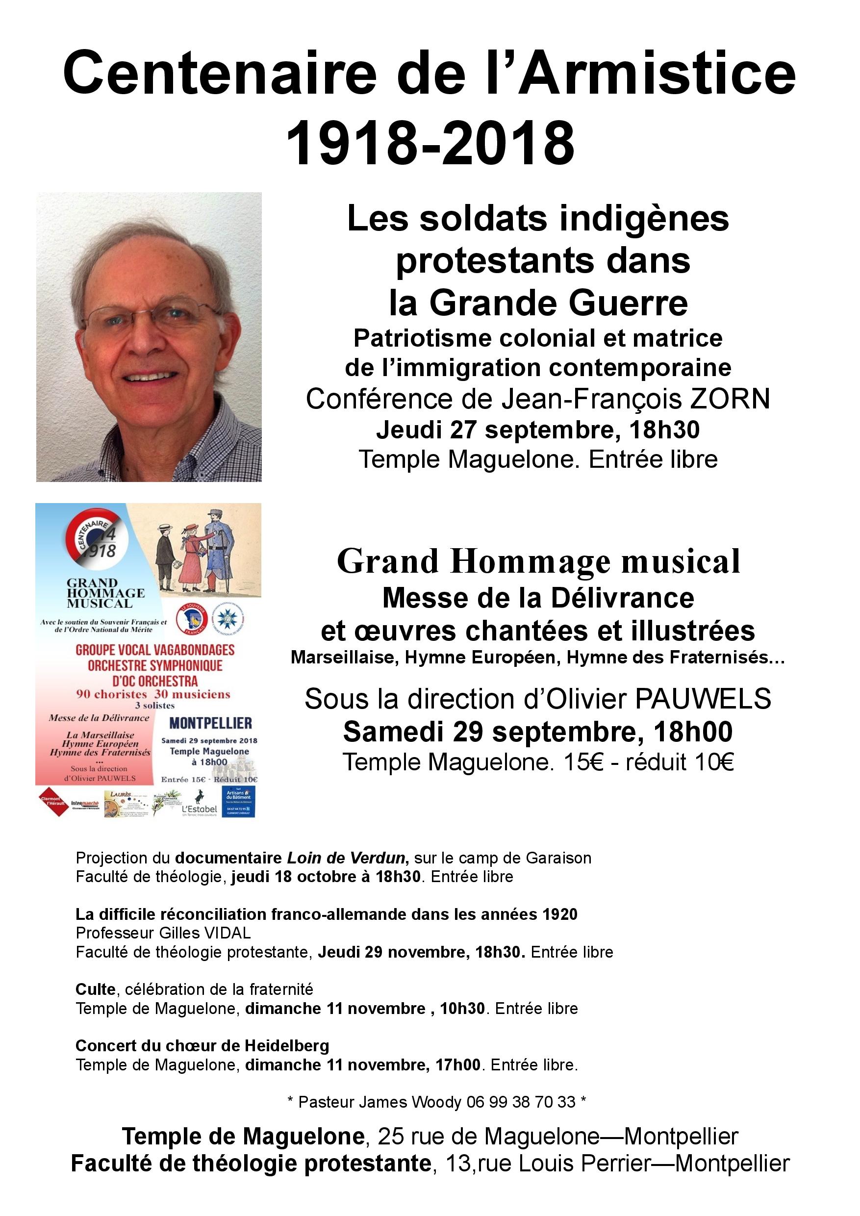 La Faculté de théologie de Montpellier et l’Eglise protestante unie de Montpellier organisent une série de manifestations autour du centenaire de l’armistice de 1918 : conférences, concert, culte…